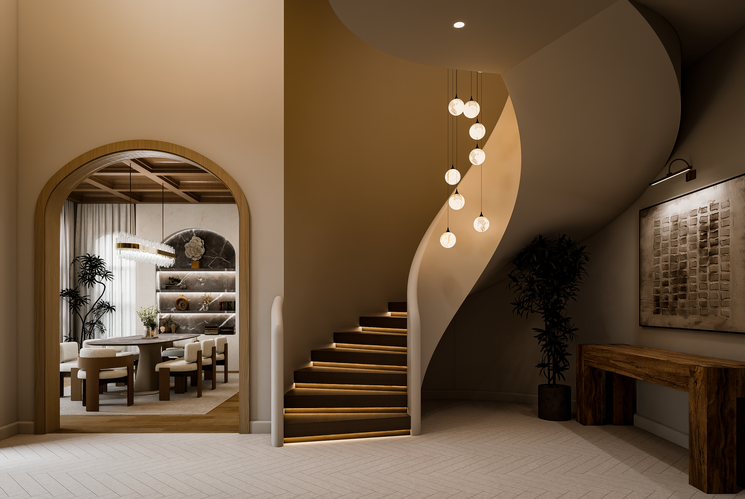 On one of Highland Park's most distinguished streets, The Villa Terra Rossa is a love letter to the Mediterranean — warm terracotta soul meets the understated elegance that Lorraine Avenue demands. CC & Co. Designs drew from the rich traditions of Southern European architecture to craft an interior that feels both timeless and deeply livable, in a city where the standard for excellence is built into the very ISD.